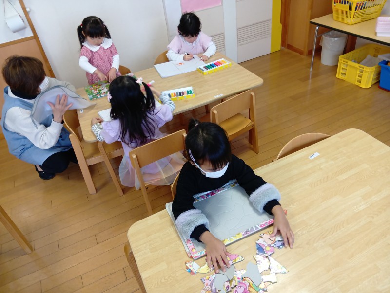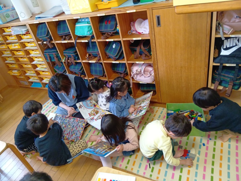 月組さんでの生活がスタートしました。お部屋にある新しいおもちゃ、新しい用品に目を輝かせていた月組さんです。新しい職員環境にちょっぴりドキドキもあると思いますが、月組さんのペースを大切にゆったり過ごし、たくさん遊びたいです。朝の自由遊び、自分の好きな遊びを夢中になっている姿が、とってもステキでした。