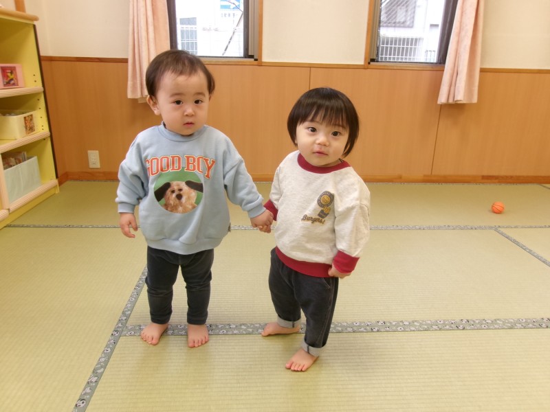 最近は、友だちとの関わりが増えてきたつぼみぐみさん。いっしょに手を繋いで歩いたり、同じ遊びを真似してみたりと、お友だちといっしょが嬉しいようです。